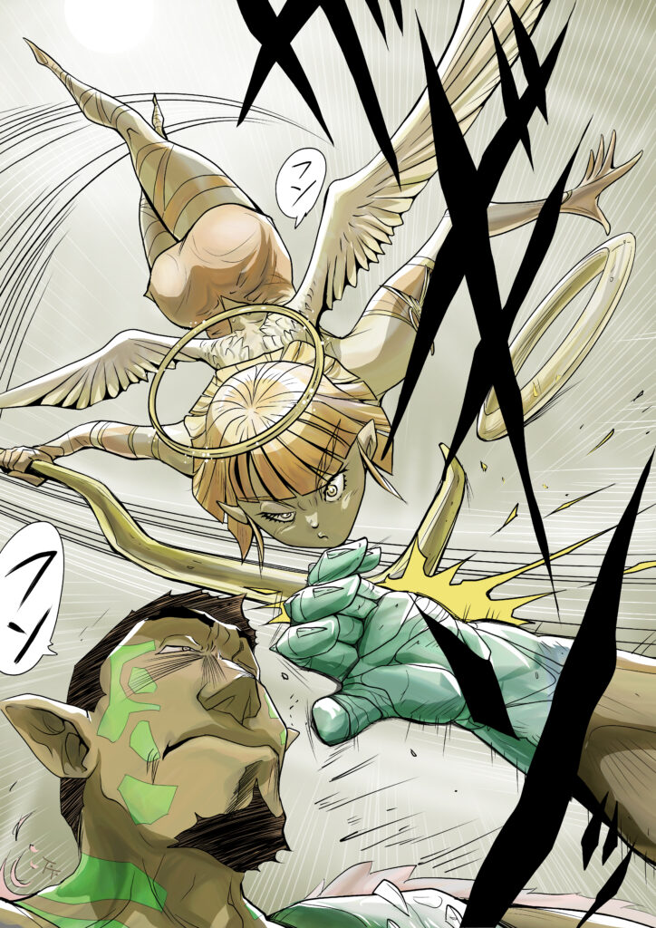 宙返りしながら相手の頭上を飛び越え背後をとり、一撃を喰らわせようとしますが・・・