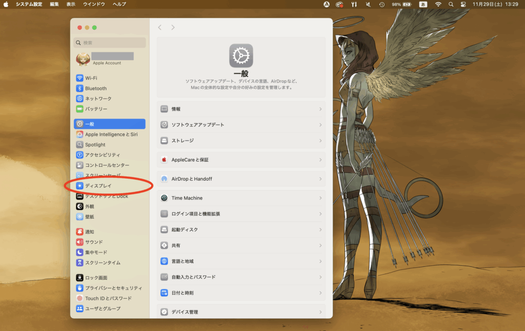 Mac の「システム設定」を開き、ディスプレイを選択します。