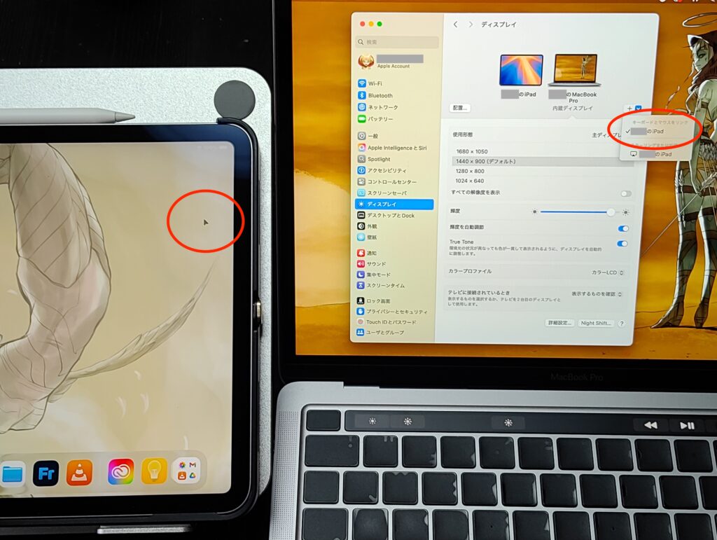 マウスカーソルが Mac と iPad を行き来できるようになりました。