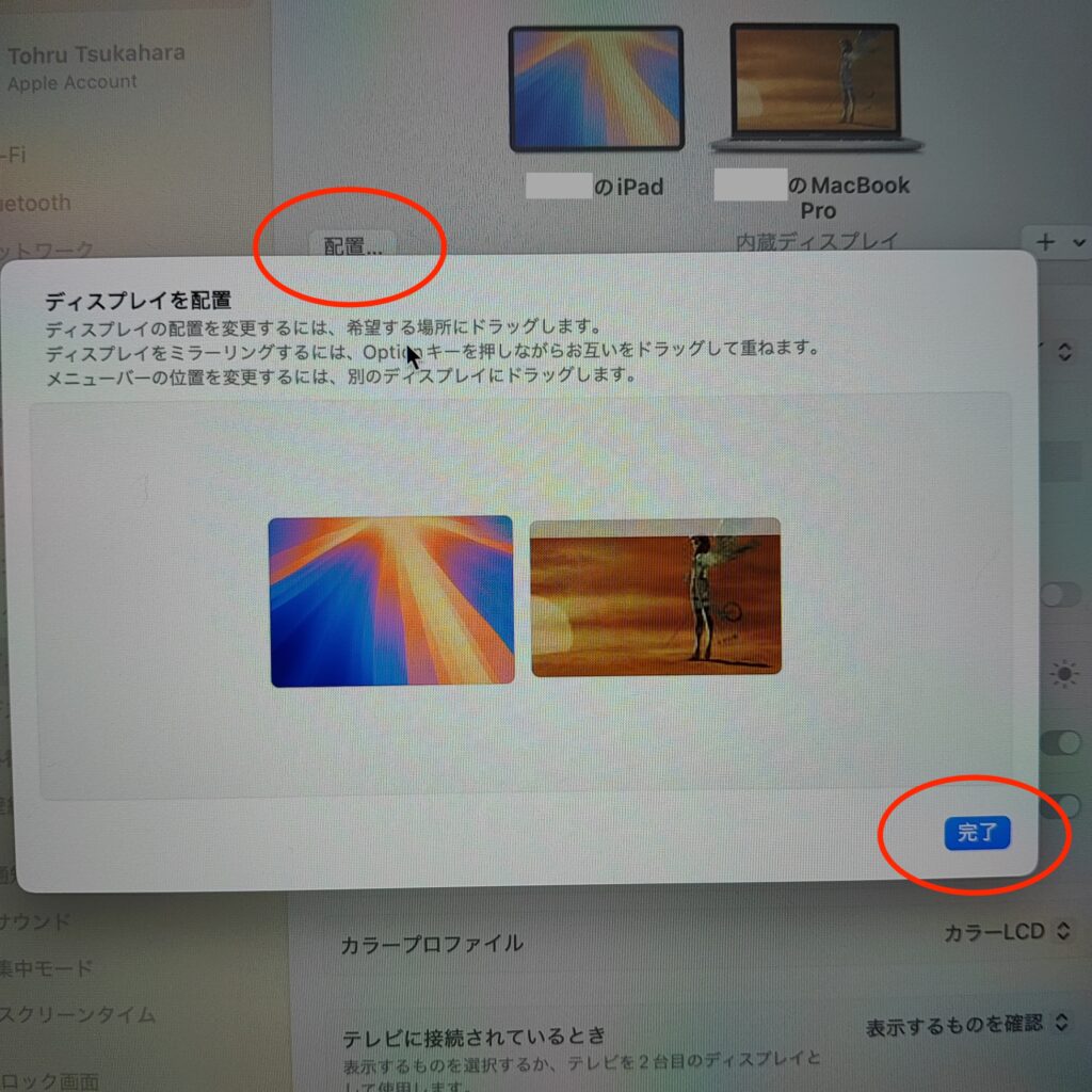 左側に iPad を配置しているので、Mac でマウスカーソルを画面の左淵へウニーンて引っ張ると、ヒョコッと iPad の方の画面へマウスカーソルが出てきます。
