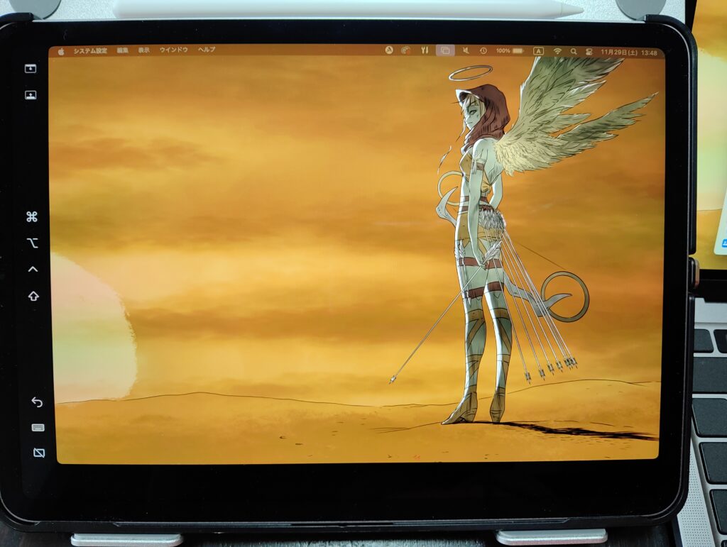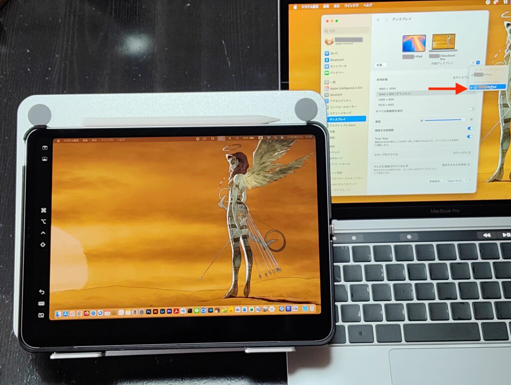 普通の外付けディスプレイと違うところは、画面の中が iPad だということです。なのでキーボードやマウスで Mac から iPad の操作ができます。