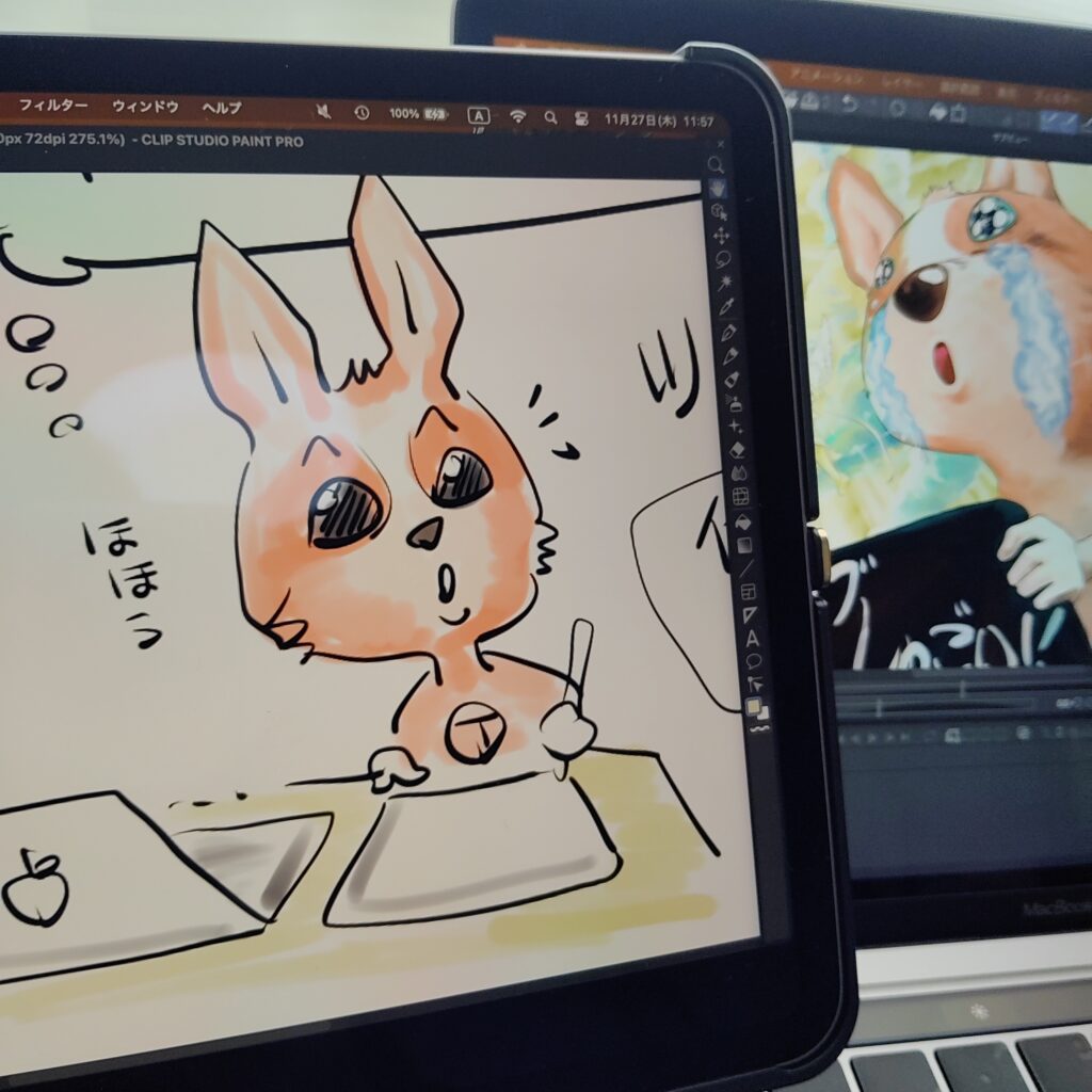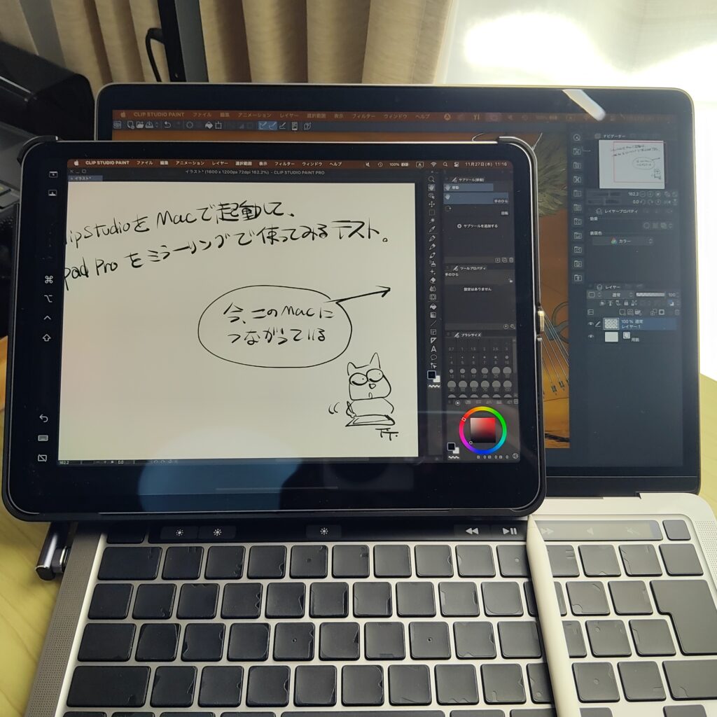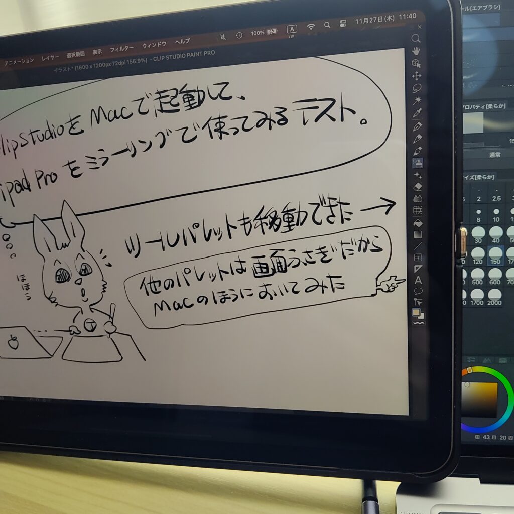- 使用頻度の低いツールパレットとか iPad 側に邪魔な物は Mac の画面上に出しておける