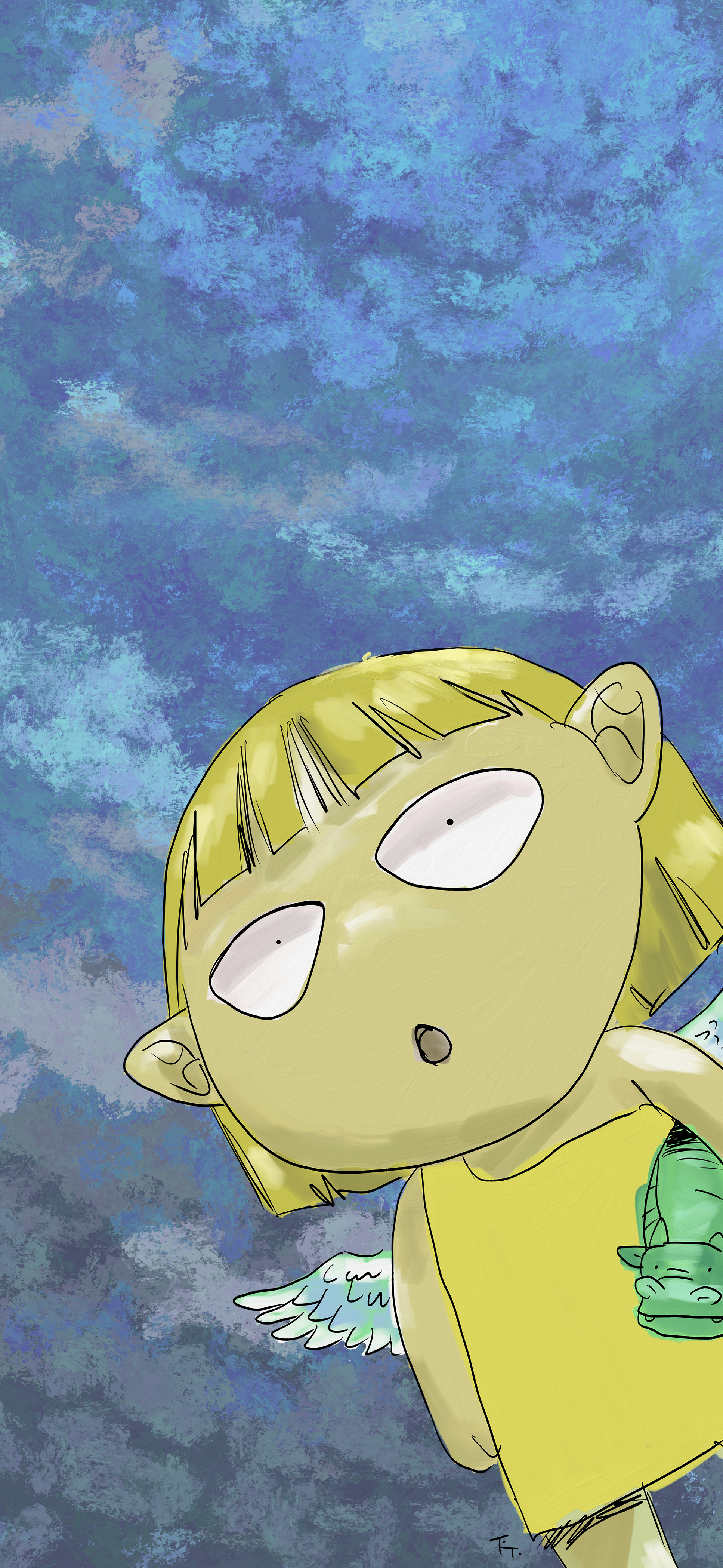 ということで、空の青さに驚く天使のスマホ壁紙を作りました。