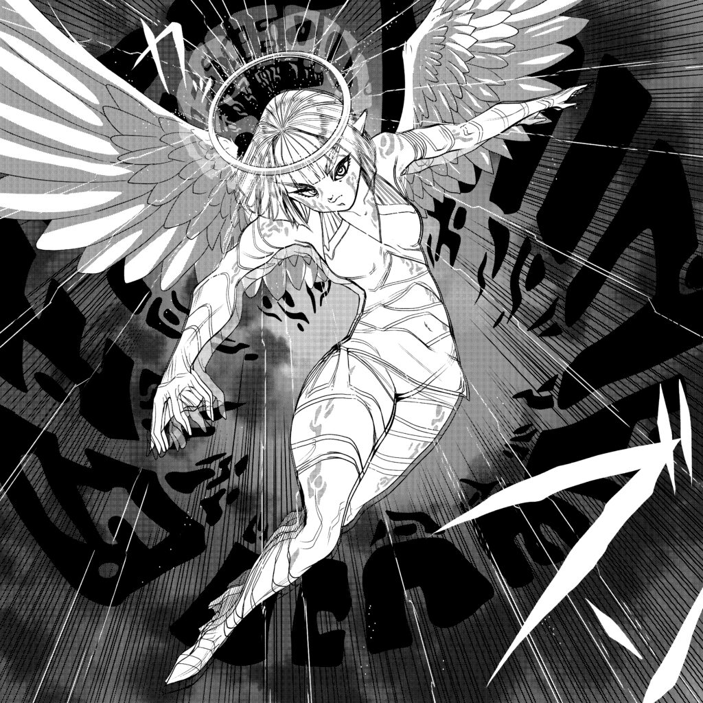 天使が飛びながら時間遡上をするシーンも、黒い文様を螺旋のように曳いてかっ飛んでいく。良き。